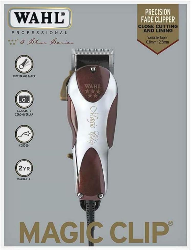 Wahl Magic Clip Clipper 5-Star ، أداة قص الشعر الخافتة النهائية. صُممت ماكينة الحلاقة خفيفة الوزن هذه خصيصًا للتقليص والتلاشي التقليدي وتقص بسهولة من خلال أنواع الشعر السميك مثل الشعر الأفرو.